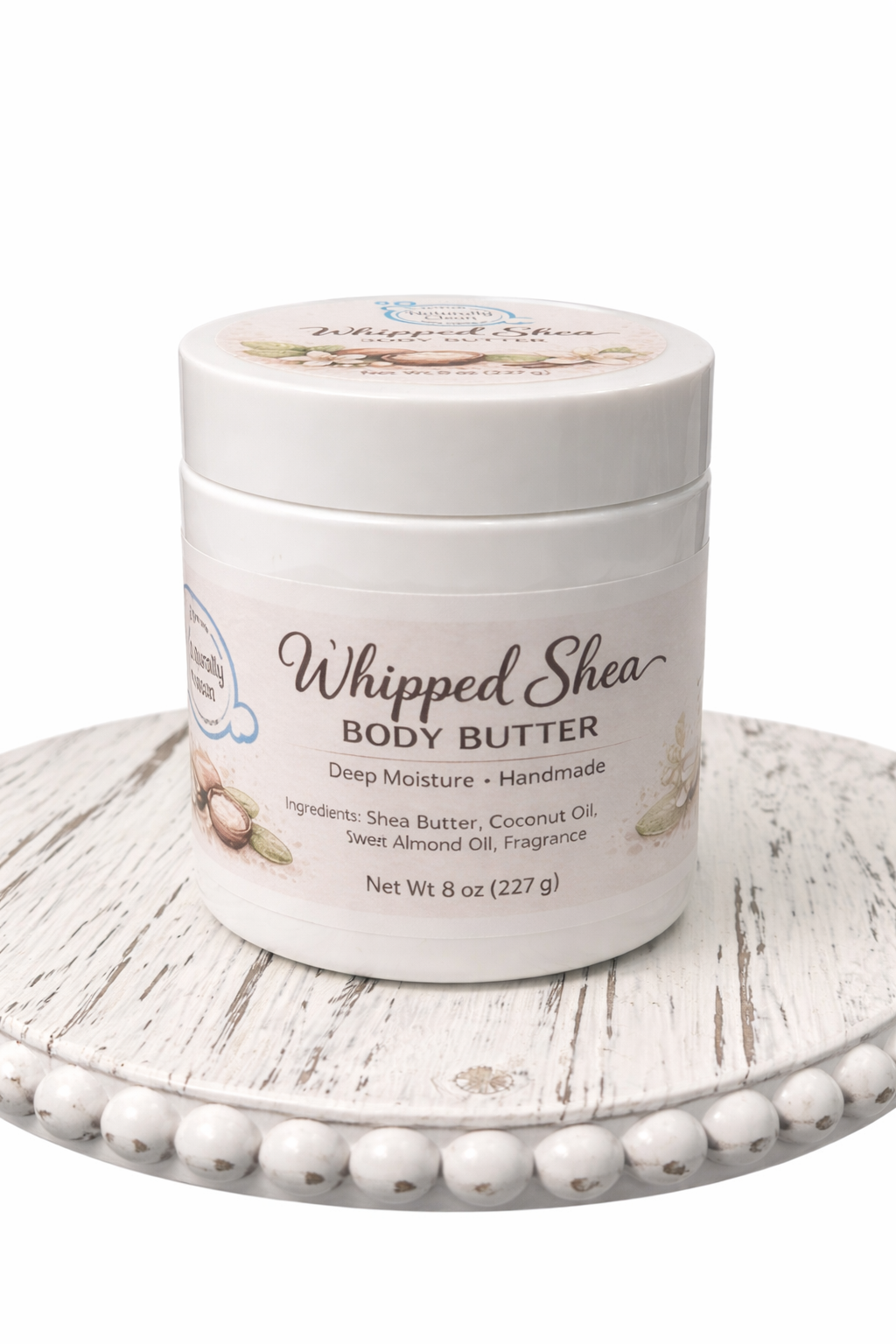 Shop › Whipped Shea Body Butter Image 1 of 1 Whipped Shea Body Butter $10.00 8 ozCoconut fragrance Ingredients- Shea butter, coconut oil, sweet almond oil, Vitamin E, arrowroot powder, fragrance Add To Cart Added! 8 ozCoconut fragrance Ingredients- Shea butter, coconut oil, sweet almond oil, Vitamin E, arrowroot powder, fragrance
